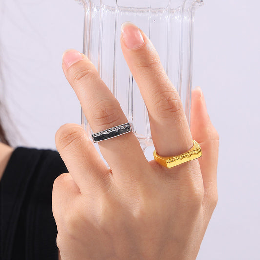 B廠【A066】韓國版小眾幾何岩溶光麵食指戒簡約時尚高級感鈦鋼鍍18k真金飾品 24.07-3