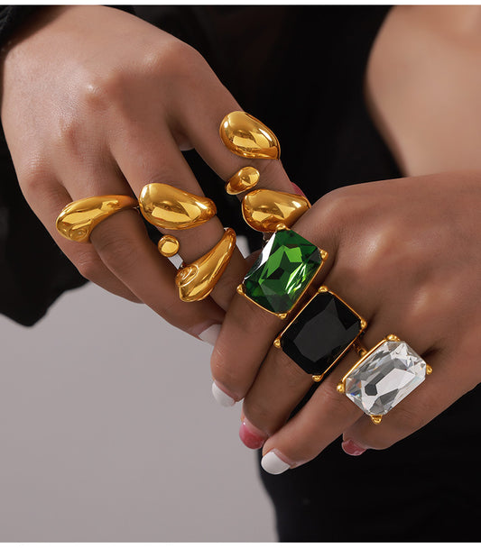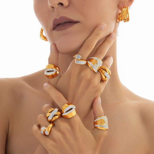 B廠【A108-A690】歐美嘻哈風個性獨特簡約小眾輕奢設計感飾品幾何鑲鑽鈦鋼鍍金戒指 24.04-2