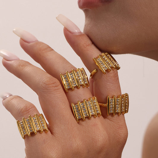 B廠【A788】ins小眾設計多排捷克鑽開口戒指不鏽鋼尾戒簡約時尚不掉色 25.07-2
