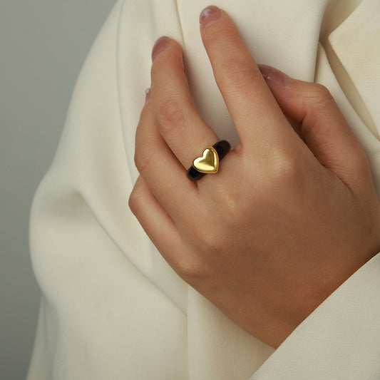 B廠【A735】跨國時尚熱賣光面愛心戒指女2024年春季砝碼彩釉指環開口調整尾戒 24.01-2