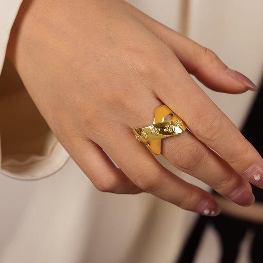 B廠【A696】跨國熱賣扭結印花開口戒指銅材質小眾設計感網紅輕奢指環飾品女 24.01-1