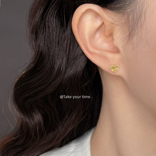 C廠【6652】車花工藝!厚鍍真金切割面很閃925銀針迷你小巧簡約愛心耳環耳飾 25.08-5