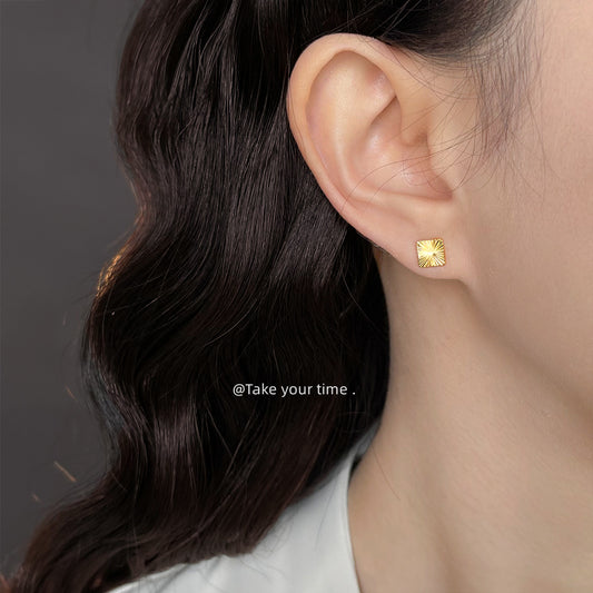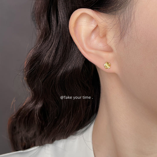 C廠【6649】車花工藝!厚鍍18K真金925銀針切面迷你小巧簡約輕奢風耳環耳飾女 25.08-5
