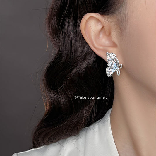 C廠【6675】彩蝶~原創設計微鑲鋯石森系超仙很美蝴蝶手工彩繪耳環925銀針耳飾 25.08-5