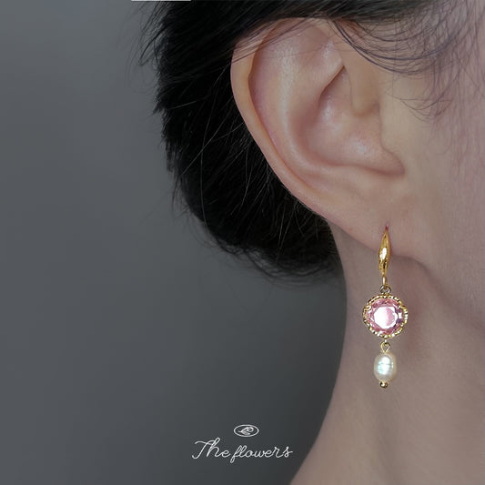 C廠【6802】淡水珍珠粉鋯石幾何手工設計感時尚清新甜美溫柔新耳環耳環 25.09-3