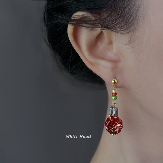 C廠【6857】文藝復古琉璃花朵流蘇原創設計手工耳飾飾品耳環女 25.10-1