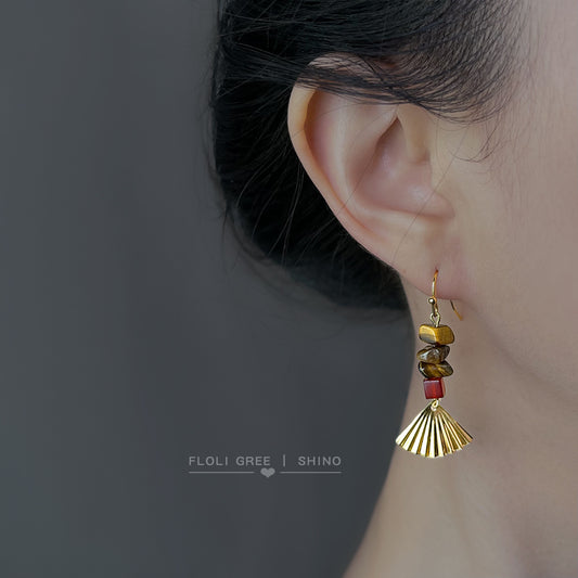 C廠【6862】文藝復古天然石虎眼石手工藝設計感新款熱賣扇子國潮耳環耳環女 25.10-1