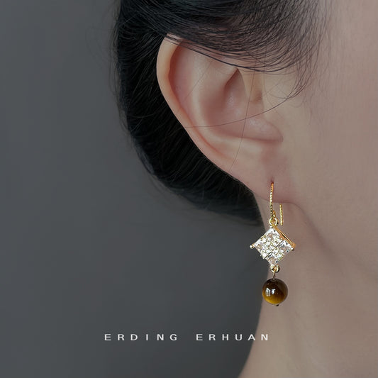 C廠【6874】微鑲鋯石秋冬新款天然石虎眼石美拉德風時尚高級感耳飾耳環女 25.10-1