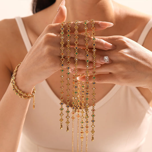 B廠【TXP176】不銹鋼小花手工鏈條滴油彩色重工項鍊手鍊腳鍊套裝 24.11-3