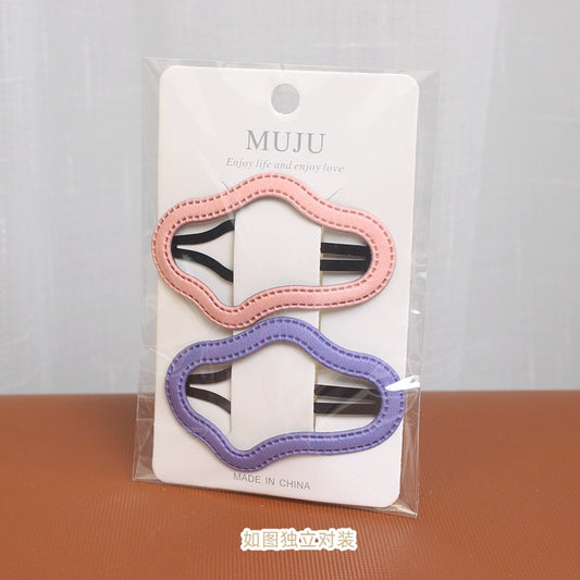 D廠【D115】高級感PU皮質髮夾新款對裝BB髮卡韓版甜美雲朵五角星側邊瀏海夾 24.03-1「D廠-單筆結帳需滿,NT$600出貨(不含運費)」