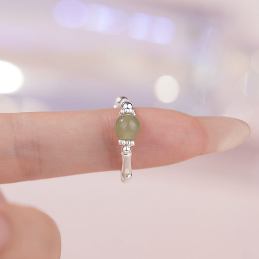 D廠【YC4900R】足銀S999新中式和田玉竹節碎銀戒指女時尚個性國風指環 25.11-3