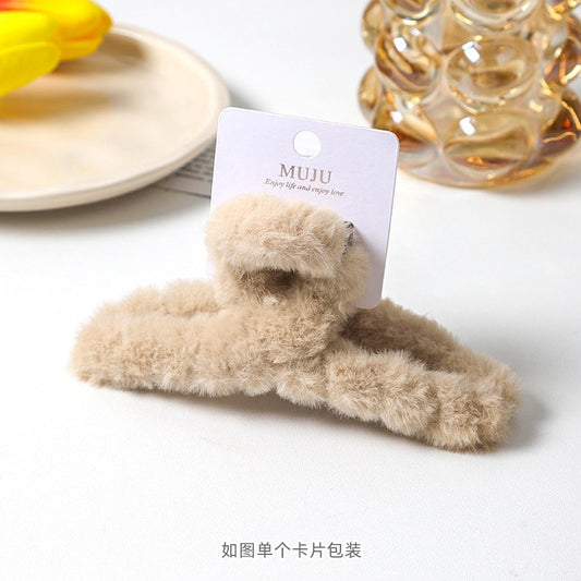 D廠【D266】新款秋冬毛絨抓夾大11cm後腦勺髮夾毛毛髮飾甜美仿兔毛鯊魚夾 24.09-4「D廠-單筆結帳需滿,NT$600出貨(不含運費)」