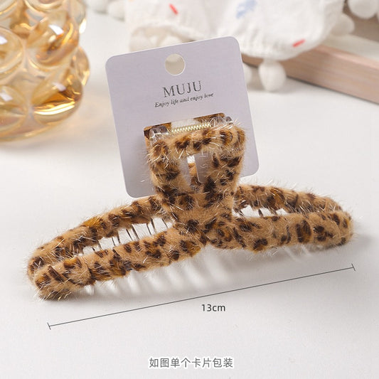 D廠【D117】高級感卡裝髮夾女甜酷風豹紋抓夾秋冬毛絨髮卡夾子後腦勺鯊魚夾 24.12-3「D廠-單筆結帳需滿,NT$600出貨(不含運費)」