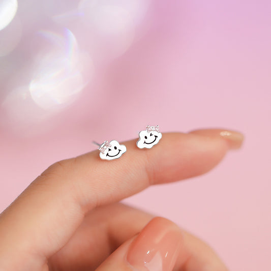 D廠【YC3703E】原創足銀S999雲朵笑臉耳環可愛卡通清新百搭甜美小眾簡約耳飾 25.12-2