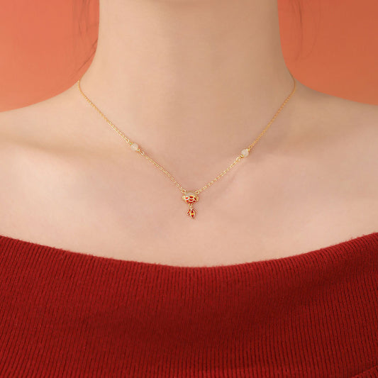 D廠【YC3360N】原創足銀S999小錦鯉與田玉項鍊國風中式國風設計輕奢鎖骨鏈 25.12-2