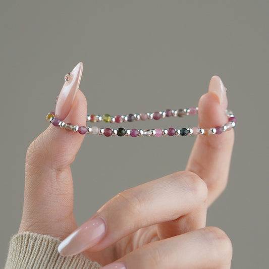 E廠【YC4619SL】S999足銀碧璽手鍊精緻手串甜美氣質文藝淡雅清新小眾手飾 25.03-3