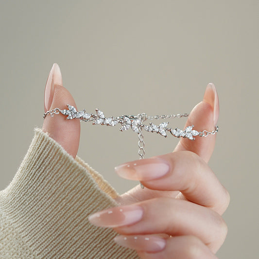 E廠【YC5474SL】S999足銀甜美四葉草鋯石愛心手鍊女秋冬氣質小眾閨蜜手飾 25.02-3