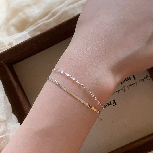 E廠【XDQ0408S】S925純銀雙層手鍊女波光粼粼扁蛇鏈疊戴手飾ins網紅百搭輕奢 25.11-3