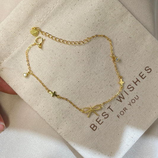 E廠【XDQ0637S】S925純銀韓系甜美麻花蝴蝶結手鍊女簡約氣質十字ins百搭手飾 25.11-3