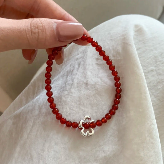 E廠【XDQ0589S】韓系ins風花朵紅瑪瑙手串女S925純銀氣質顯白百搭手環手飾品 25.11-3