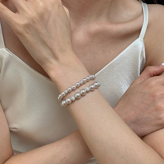 E廠【XDQ0005S】法式輕奢曼塔玫瑰色仿珍珠手鍊女S925純銀高級感小眾疊戴手飾 25.11-3