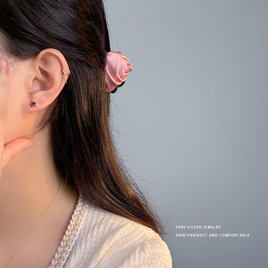 E廠【YC10118E】S999足銀鑲鑽四芒星耳環女小眾設計感高級耳骨釘秋冬耳飾 24.05-4