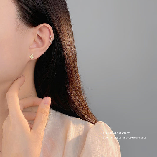 E廠【YC10009E】S925純銀清新珍珠馬蹄蓮耳墜女新中式新款配件耳環耳飾品 24.04-3