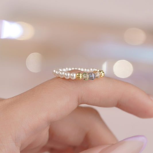 E廠【YC4737R】S925純銀彩珠珍珠戒指新款韓式簡約多巴胺夏季清新手飾 25.07-1