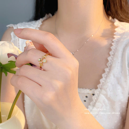 E廠【YC4228R】S999足銀清新鬱金香戒指女田園風仙女花朵開口戒新款指環 24.05-2
