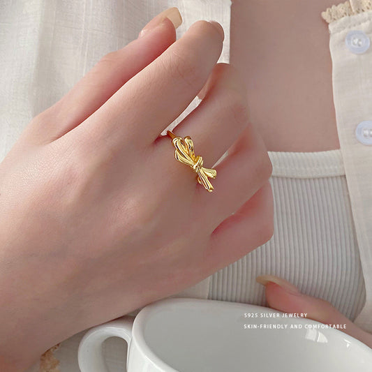 E廠【YC4485R】S925純銀甜美可愛蝴蝶結戒指輕奢高級感淑女戒指開口戒指 24.01-3