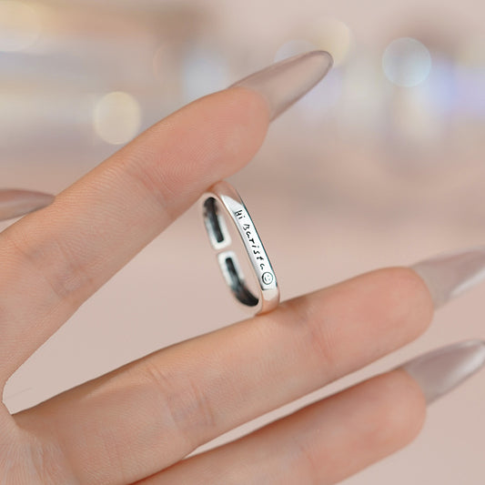 E廠【YC5585R】S999足銀簡約幸運字母戒指女時尚百搭小清新文藝通勤氣質指環 25.05-3