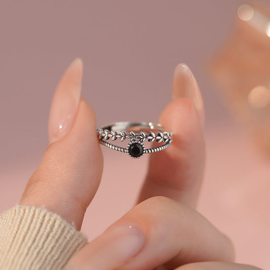 E廠【YC4596R】S999足銀復古樹葉雙層戒指女文藝國風百搭通勤開口指環 25.03-4