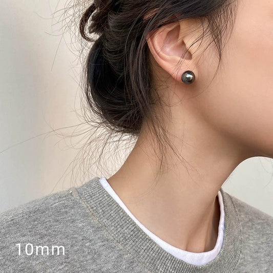 F廠【DQ11228E】復古輕奢圓形深灰色仿珍珠耳環女S925純銀精緻氣質秋冬耳飾潮 25.10-1
