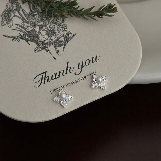 F廠【DQ10928E】S999純銀仿珍珠丁香花耳環女甜美小清新四葉花螺帽百搭耳飾潮 25.10-1
