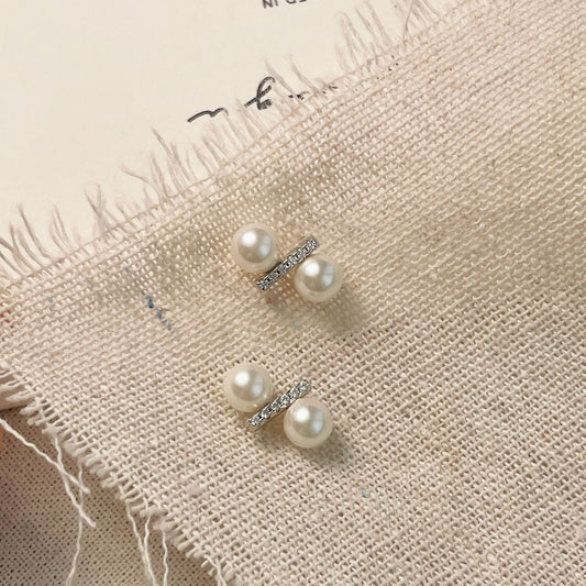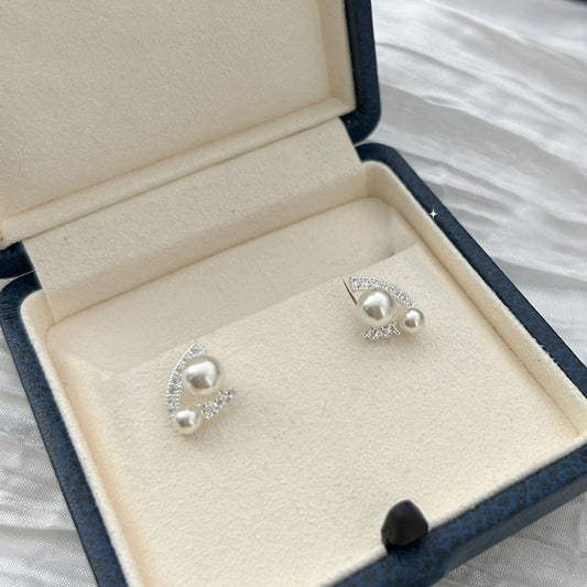 F廠【DQ11398E】S925純銀溫柔氣質仿珍珠耳環女輕奢高級感鑲閃鋯百搭耳飾 25.10-1