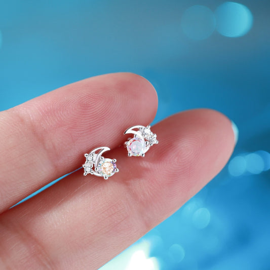 F廠【DQ10857E】S999純銀小眾設計感星月閃鑽耳環女輕奢高級感炫彩鋯石耳飾品 25.10-1