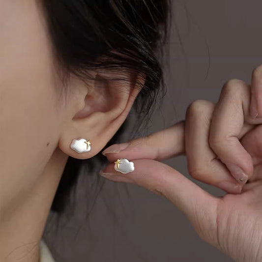 F廠【DQ10834E】S925純銀小眾設計磨砂雲朵耳環女ins簡約星星白雲日韓耳飾潮 25.05-3