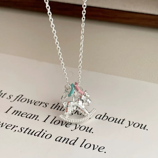 F廠【DQ1167N】S925純銀碎冰冰木馬項鍊女輕奢琺瑯夢幻少女心CNC小馬鎖骨鏈 25.10-1