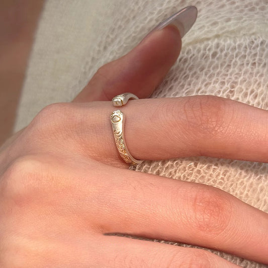 F廠【DQ8129R】足銀999時尚精緻唐草紋貓爪吉言戒指女創意設計可愛純銀指環 25.05-3
