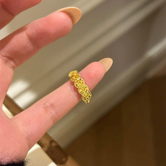 F廠【DQ8023R】足銀999中古風碎冰冰銅錢戒指女輕奢高級感五帝幣新中式指環 25.05-3