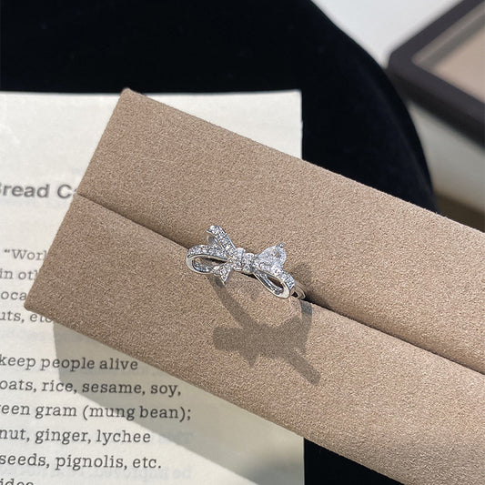 F廠【DQ8241R】S925純銀時尚輕奢蝴蝶結戒指女精緻高級感閃鑽食指戒指環 25.05-3