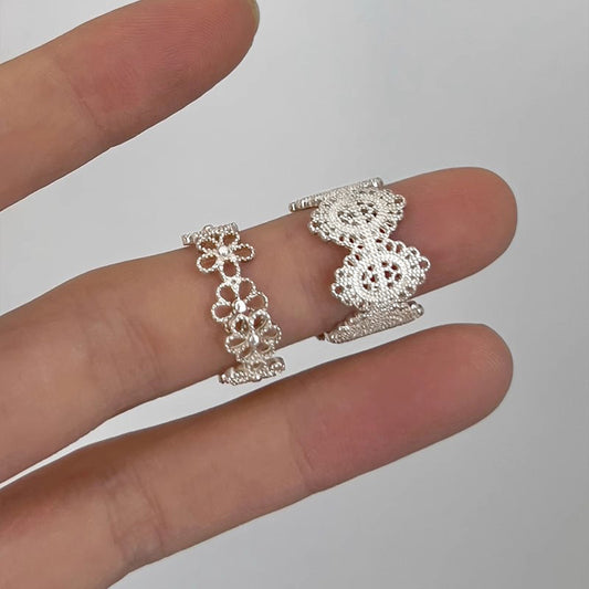 F廠【DQ8146R】法式復古蕾絲花邊戒指女S925純銀輕奢宮廷風溫柔精緻花朵指環 25.02-3