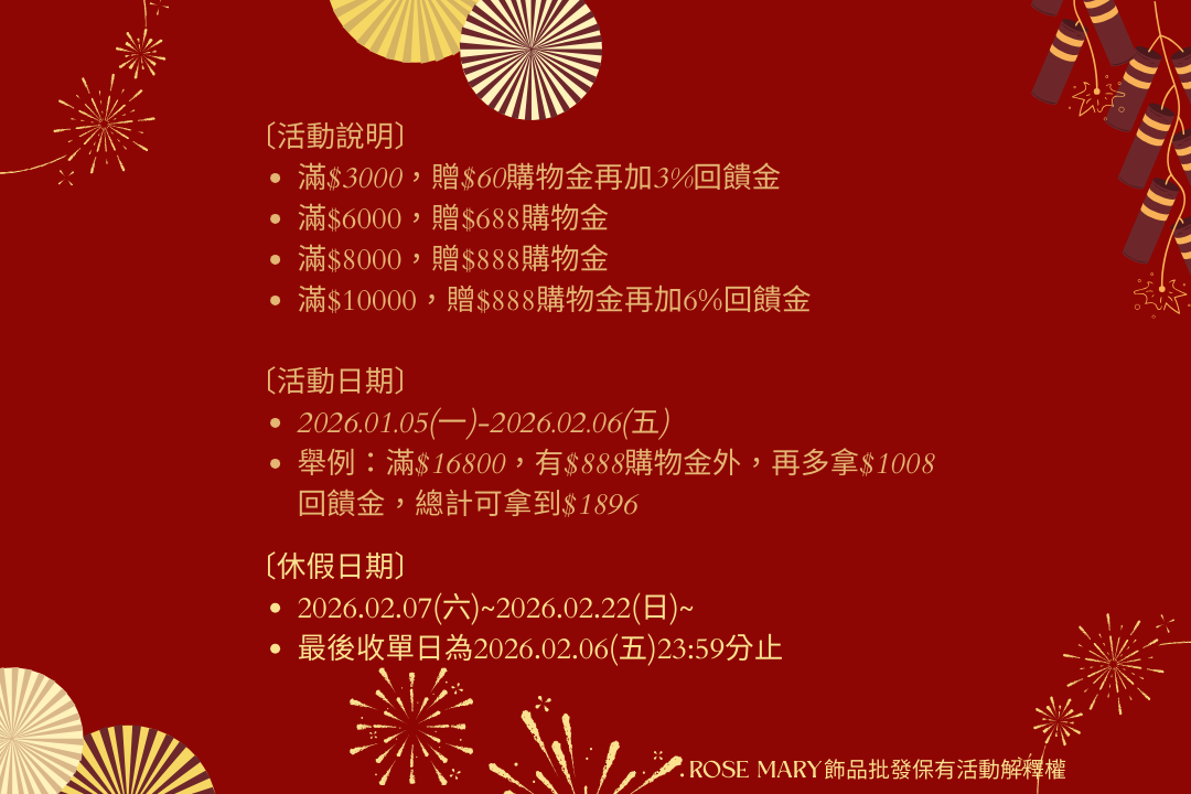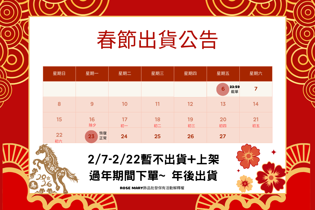 【過年休假】2026.02.07(六)~2026.02.22(日),過年下單年後出貨!