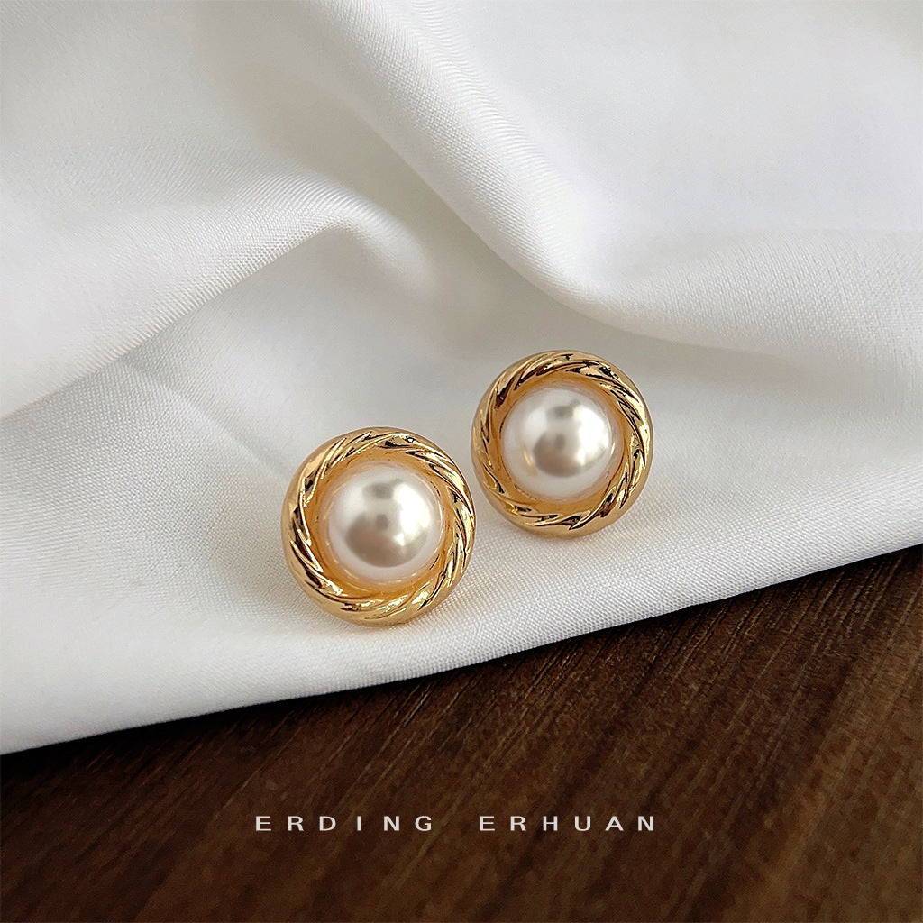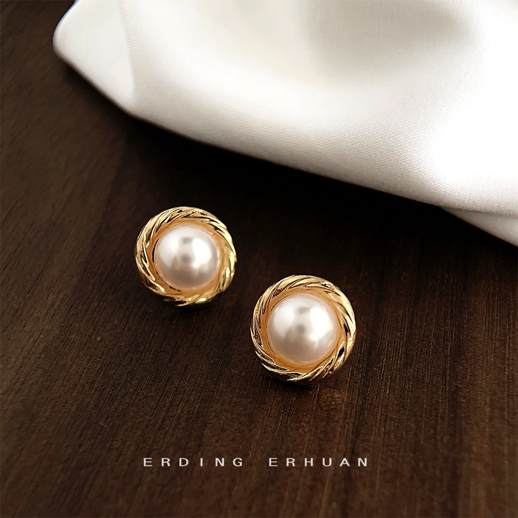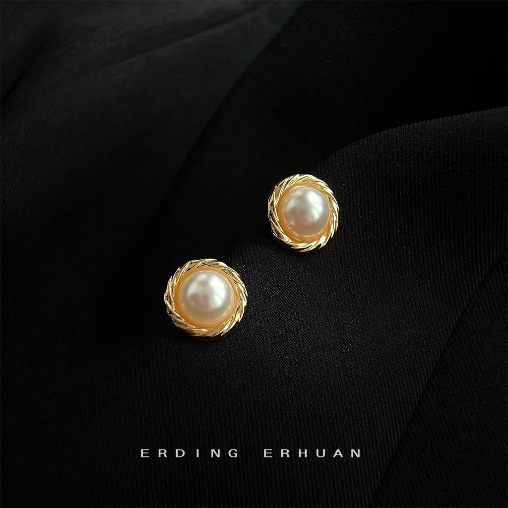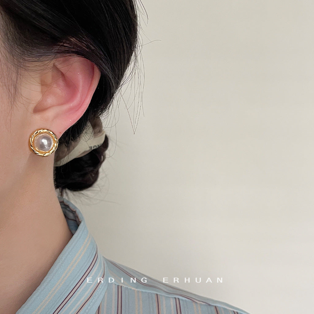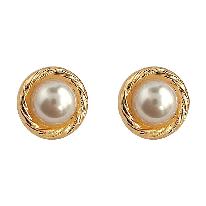 C廠【108】法式復古經典珍珠耳環優雅氣質高級感通勤百搭麻花幾何小巧耳飾品 25.08-1