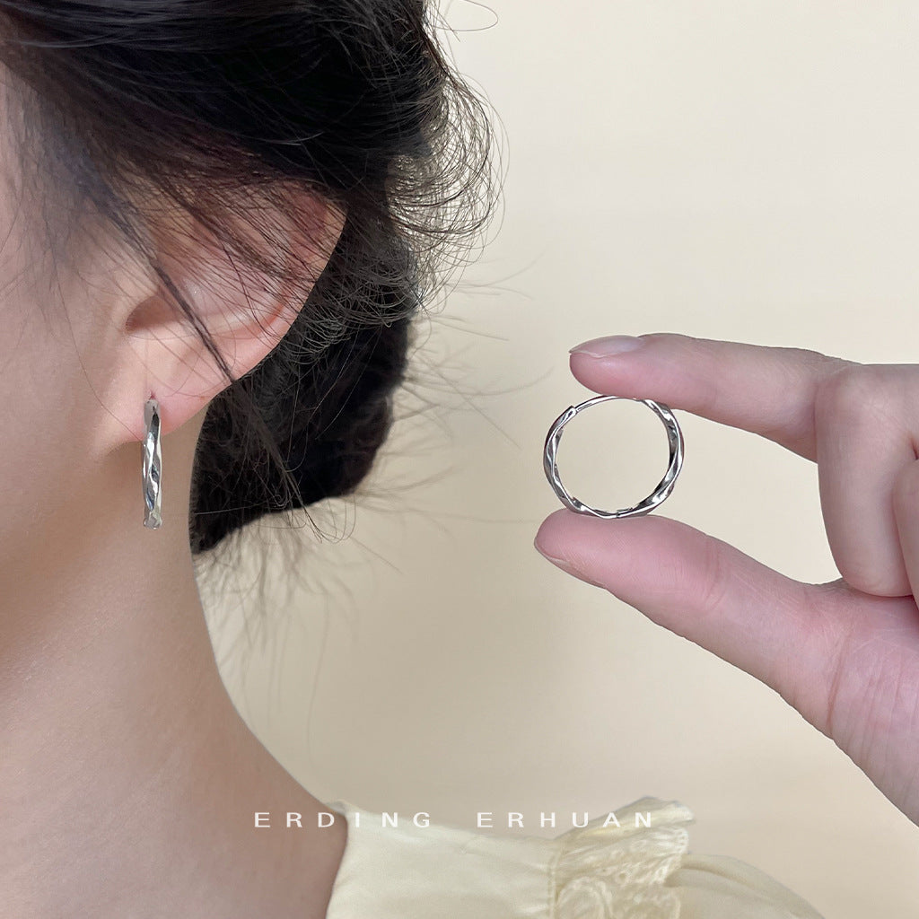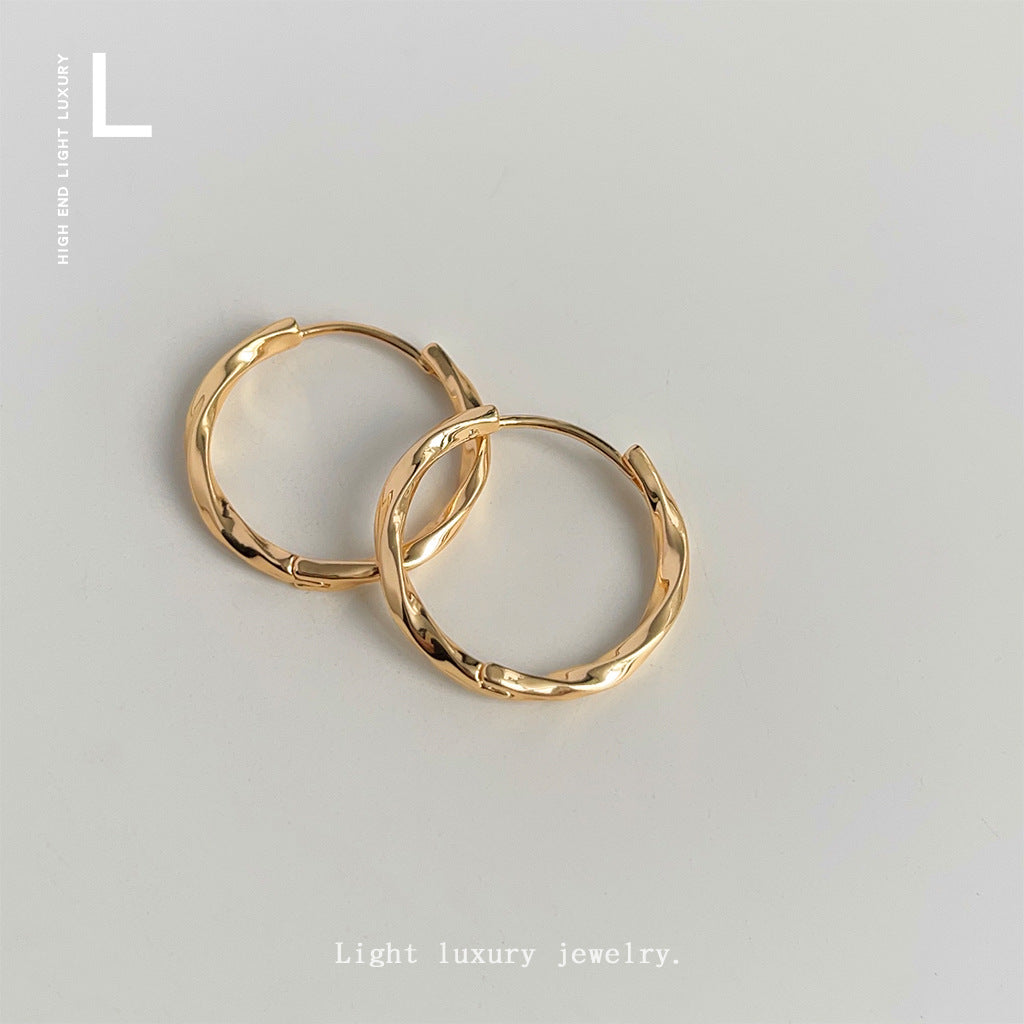 C廠【1147】時尚通勤高級感麻花素圈簡約耳扣極簡金屬感百搭歐美風氣質耳飾女 24.05-4