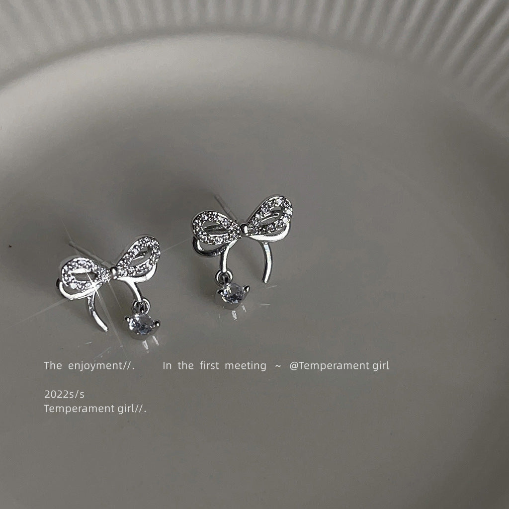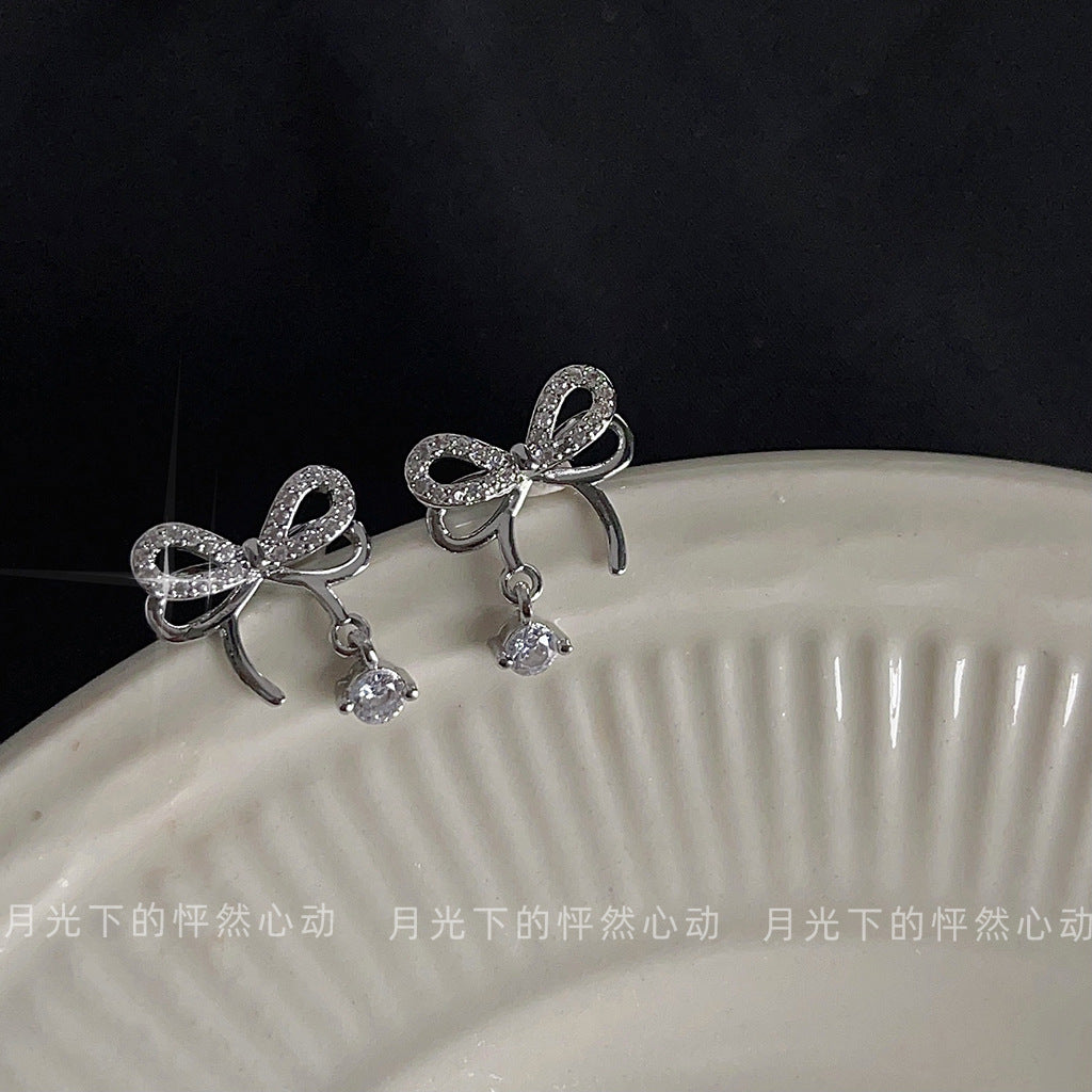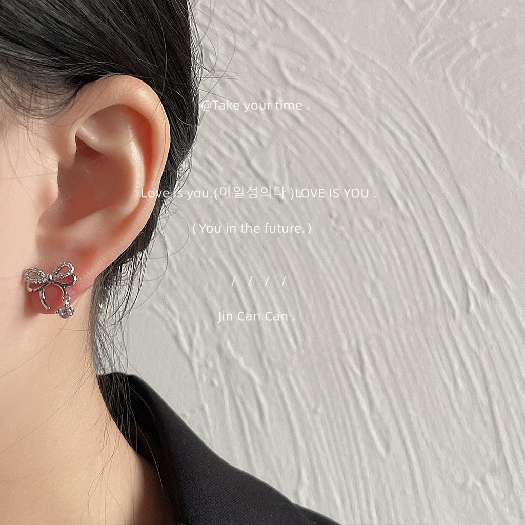 C廠【1236】甜酷風微鑲鋯石鏤空蝴蝶結耳環925銀針靈動少女感通勤百搭耳飾 24.02-4