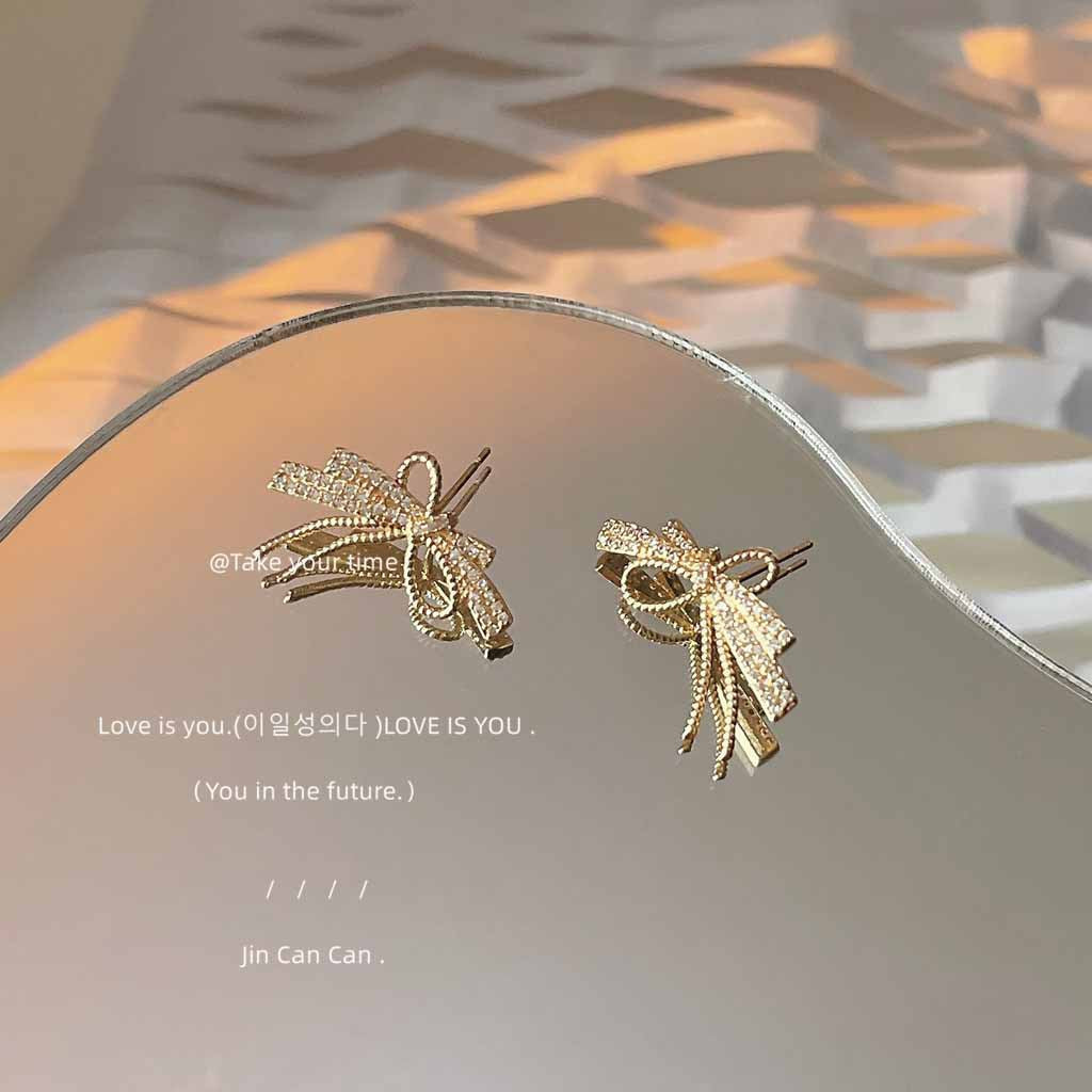C廠【1260】時尚通勤微鑲鋯石大氣靈動蝴蝶結飄帶耳環法式優雅溫柔繩結耳飾女 24.04-4