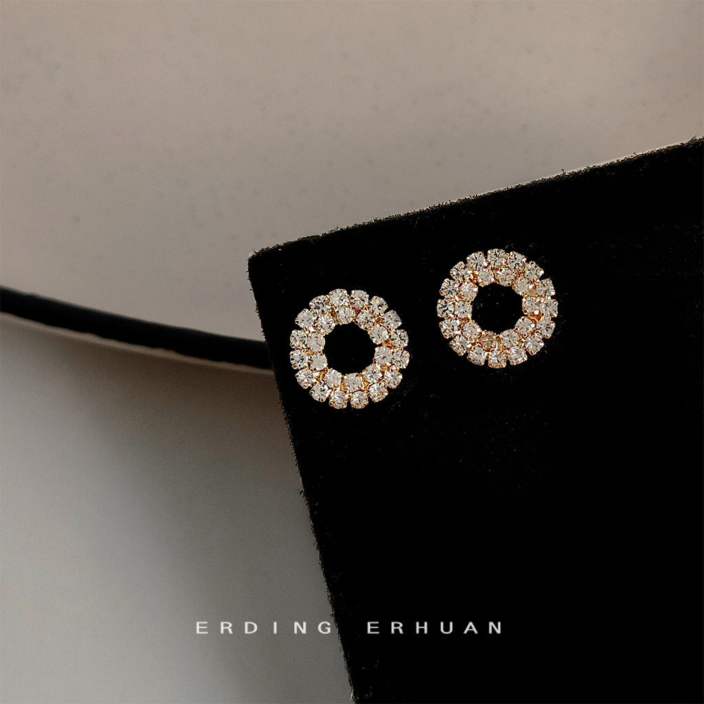 C廠【1453】時尚通勤微鑲水鑽鏤空圓形靈動氣質耳環簡約百搭設計感幾何耳飾女 24.04-4