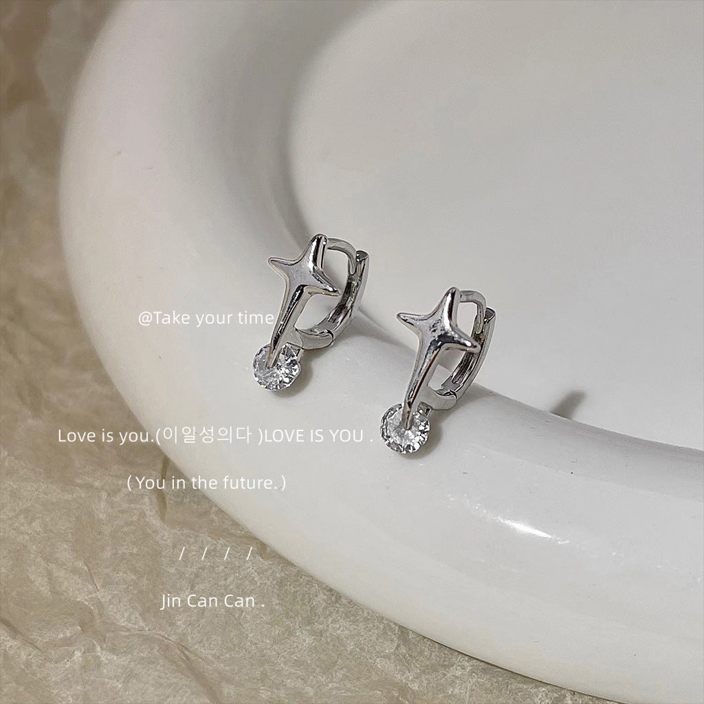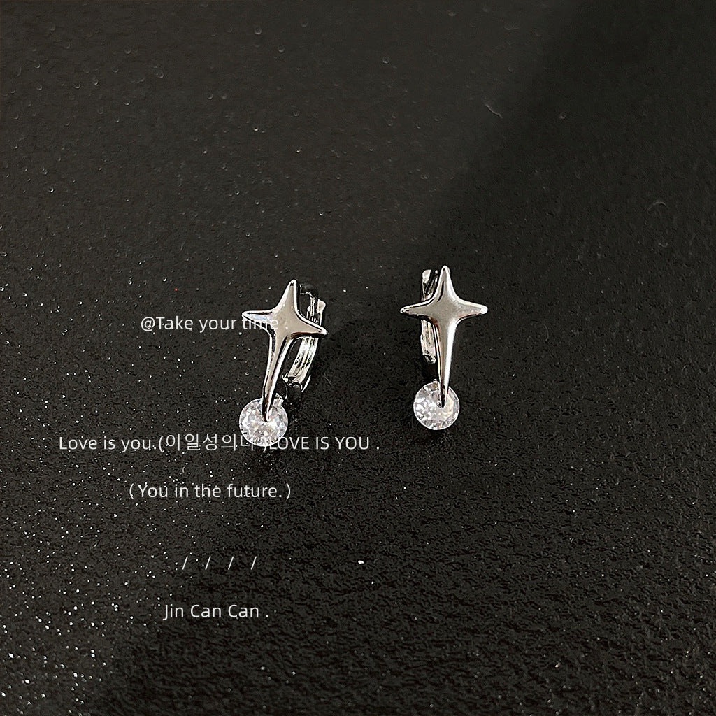 C廠【147】甜酷風芒星鋯石耳扣時尚通勤百搭冷淡風銀色系星星星球設計感耳飾 24.07-2