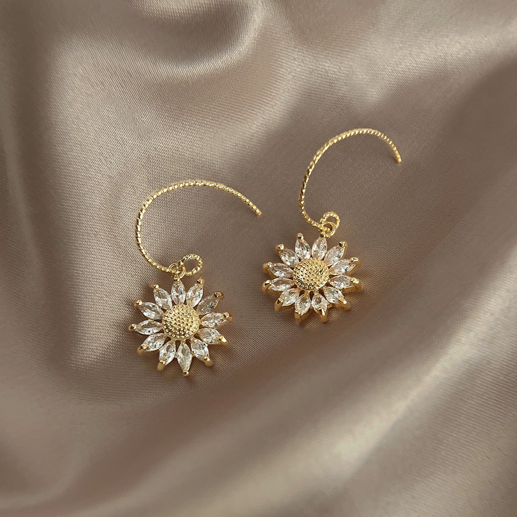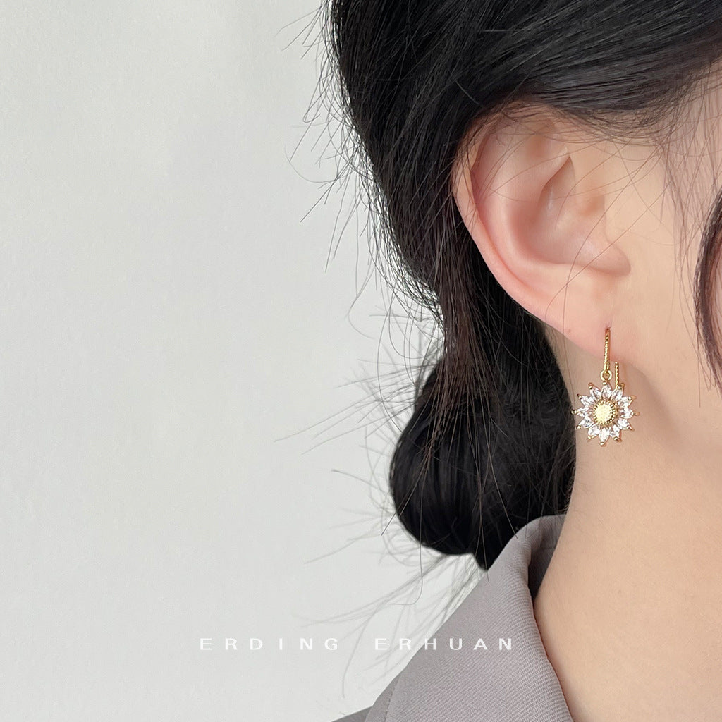 C廠【1572】法式復古微鑲鋯石太陽花氣質耳環鍍14K簡約高級感向日葵耳飾鍍14K 24.04-3